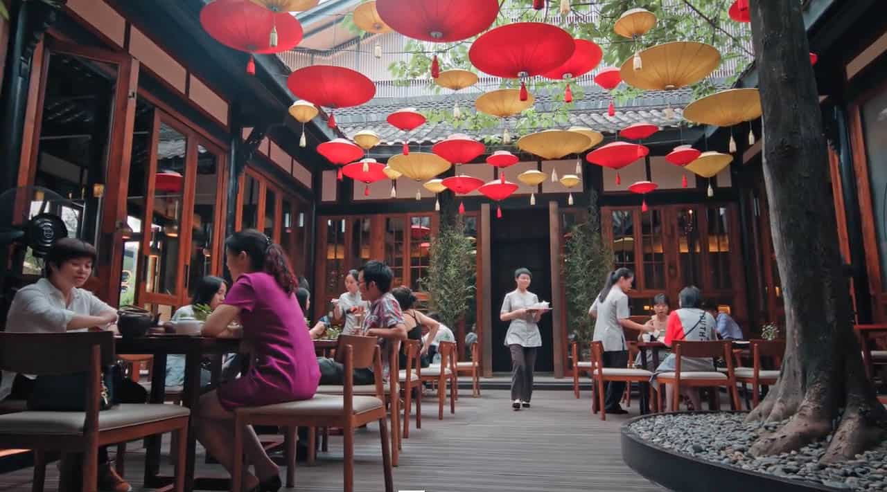 Though the majority of the video has been filmed during the day, several iconic frames have been shot during the evening, at the night garden with plenty of lanterns, in Chengdu, for example.